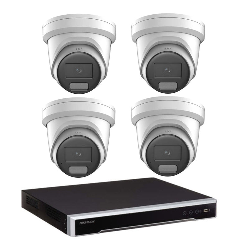 Hikvision 4 x 8MP ColorVu Hybrid 2387G3 Cameras + 8CH 4K (4TB HDD) M Series NVR Bundle: Strobe Light, Two-way Audio, Alarm Cameras & 8 Channel NVR CCTV Kit